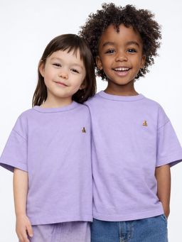 - A póló klasszikus kerek nyakkivágással, rövid ujjakkal és leejtett vállakkal rendelkezik, valamint egyenes, egyszerű szabású, amely egész napos kényelmet biztosít.