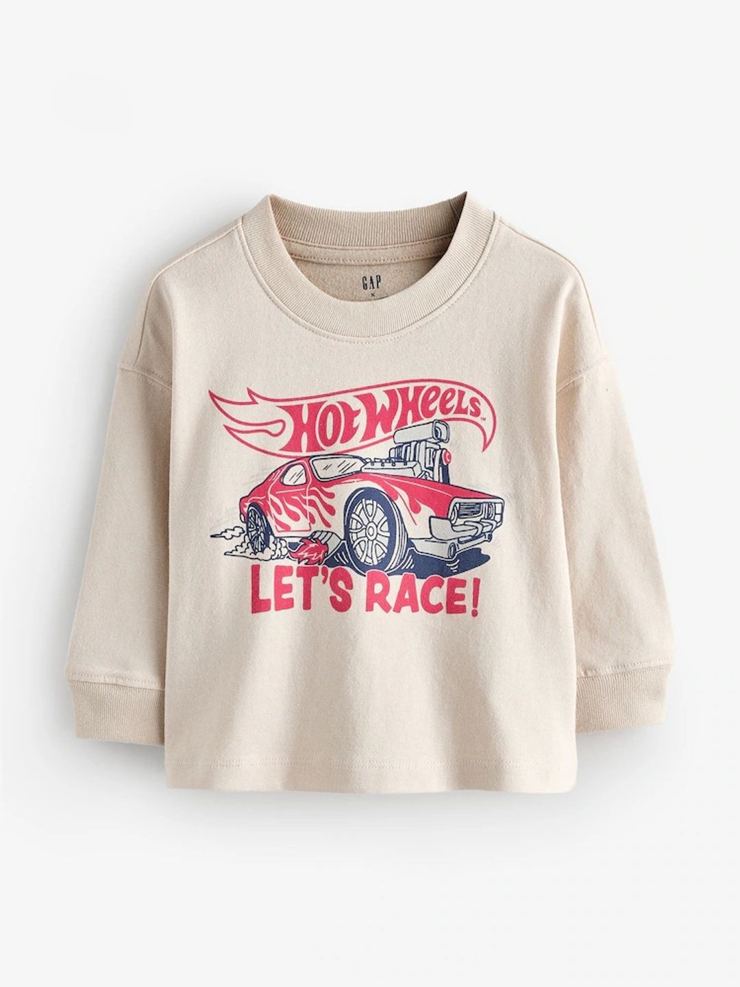 • Kerek nyakkivágással, hosszú ujjal, bordás mandzsettával, elöl Hot Wheels grafikával és Gap logóval díszítve.