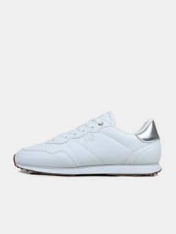 - A sima poliuretán felsőrészt kontrasztos sarokrész egészíti ki, amely modern megjelenést ad a cipőnek.